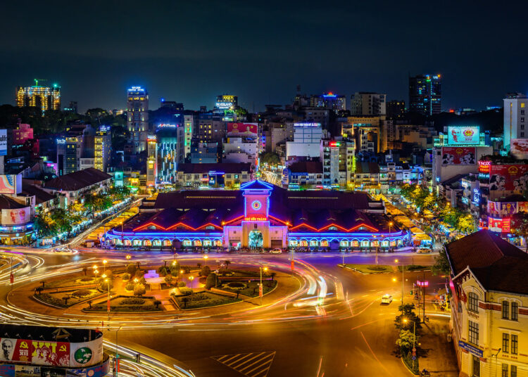 Ben Thanh Market is a market located in District 1, Ho Chi Minh City. The market was started to be built in 1912, the clock image at the south gate of this market is considered the unofficial symbol of Ho Chi Minh City. Ben Thanh Market is one of the oldest markets in Saigon, with more than 100 years of history. The market has undergone many restorations and embellishments, but still retains its original unique architecture. The market is cross-shaped, with four main doors and 12 side doors. The south gate of the market is the main door, with a three-sided clock tower 26 meters high. This clock tower is considered a symbol of Ben Thanh market and the whole city of Saigon.