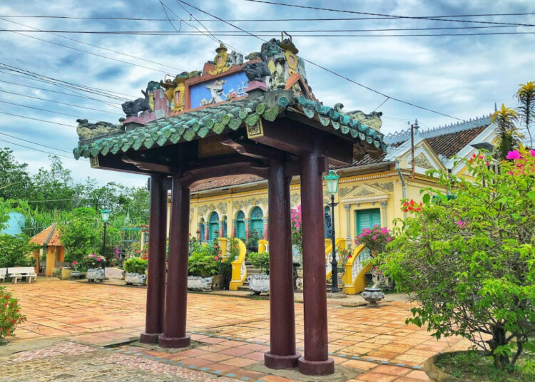 Binh Thuy ancient house has two large sea wings, the head is like a dragon’s head, the tail is like a carp’s tail, symbolizing luck and auspiciousness. The doors, windows, fences, and surrounding walls are all delicately decorated with unique patterns.