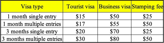 Here is the Vietnam visa on arrival cost: