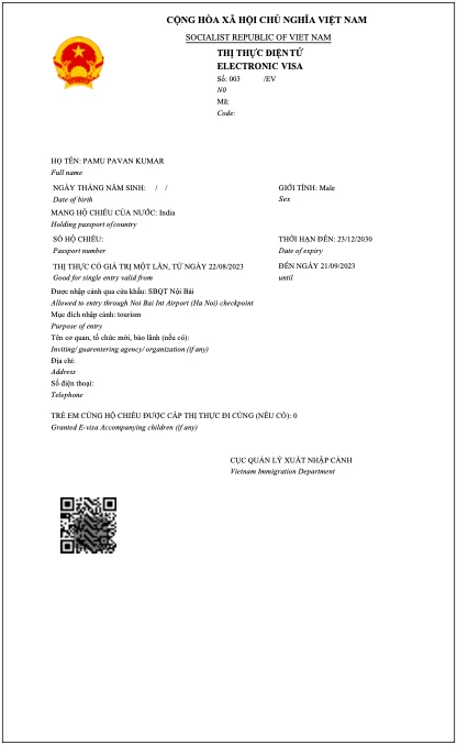 - Print out your e-visa and present it at the check-in point upon arrival in Vietnam.