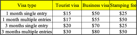 - Stamp fee: pays to Immigration Officers on arrival airport to get visa stamp into your passport.