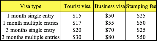 Here is the sample of the visa on arrival fees (usually updated by Viet Dream Travel):